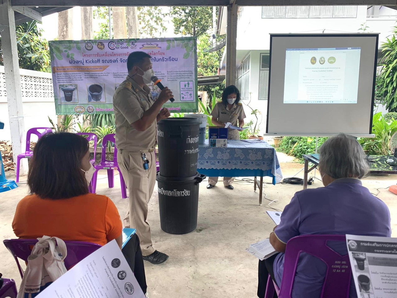 อบรมให้ความรู้ในการจัดทำถังขยะเปียกลดโลกร้อนแก่อาสาสมัครสาธารณสุขตำบลม่วงหมู่